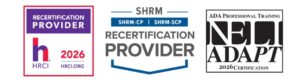 Registrants may be required to file for credit on their own behalf in some jurisdictions. We will provide all necessary forms and proof of attendance. Credit will be given to registered participants only. NELI is an approved provider of HRCI for recertification credit. NELI is recognized by SHRM to offer Professional Development Credits (PDCs) for SHRM-CP® or SHRM-SCP® recertification activities.